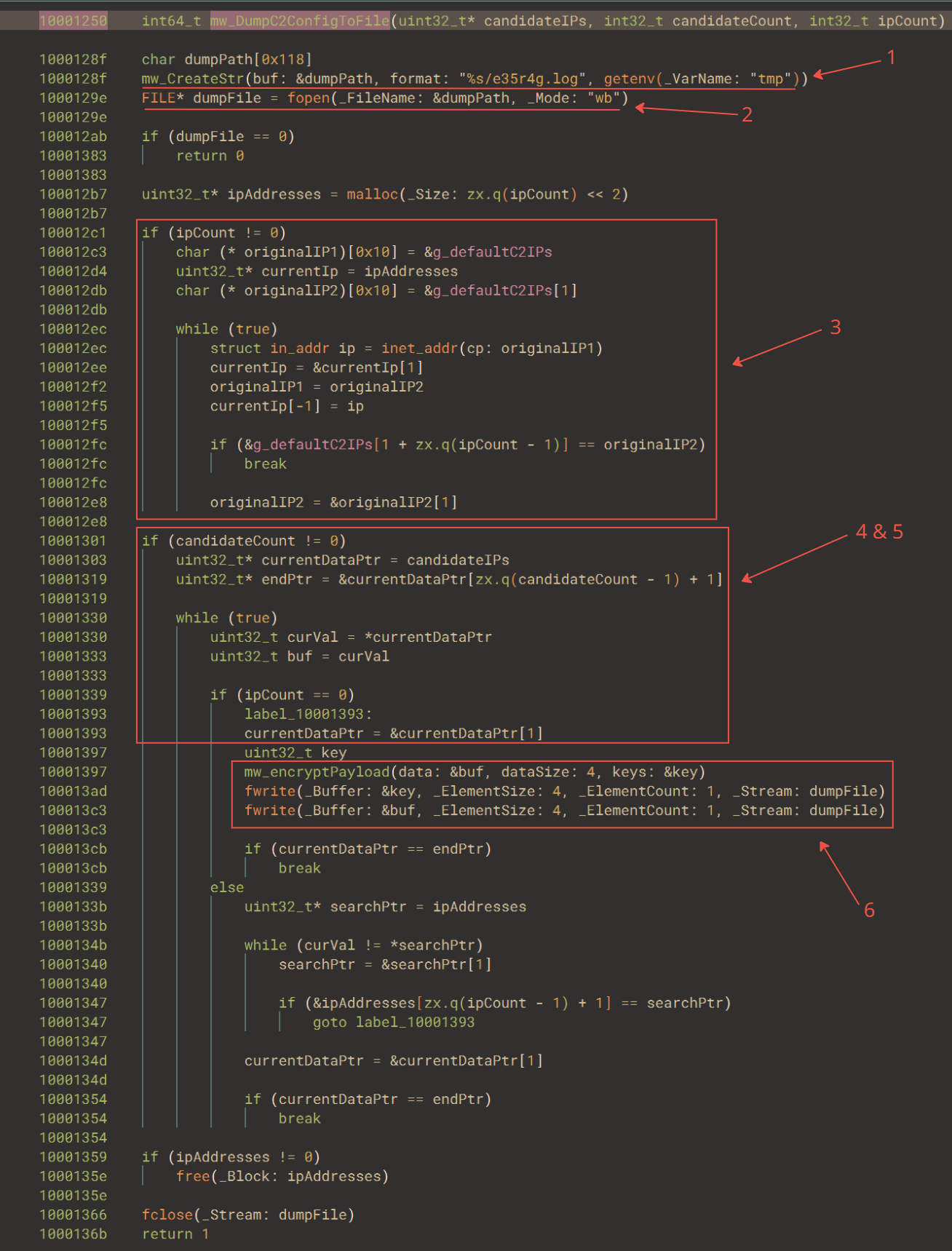 If after 3 attempts it still fails, it moves into trying to leverage it's local config at C:\Users\<username>\AppData\Local\Temp\e35r4g.log by decrypting it with the key located at the first 4 bytes of the file.